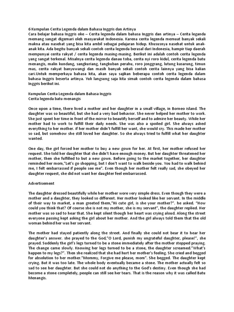 Contoh Cerita Legenda Bahasa Inggris Singkat dan Artinya - Contoh …