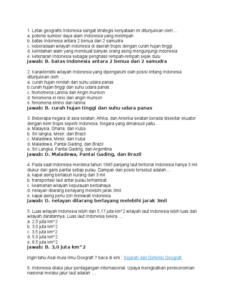 Soal Geografi Posisi Strategis Indonesia Sebagai Poros Maritim …