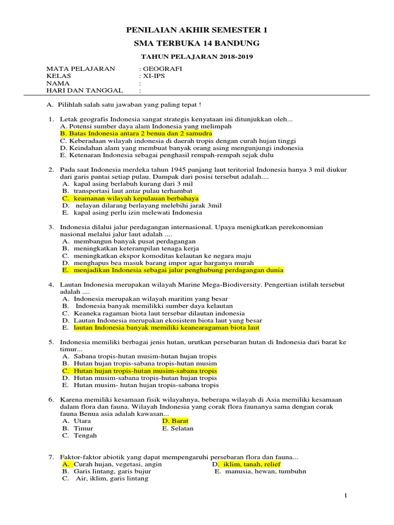 Soal Pts Geografi Kelas Xi Ganjil