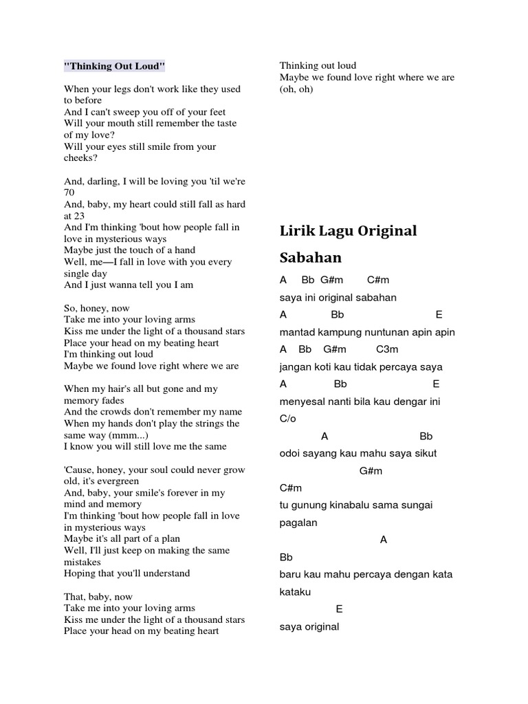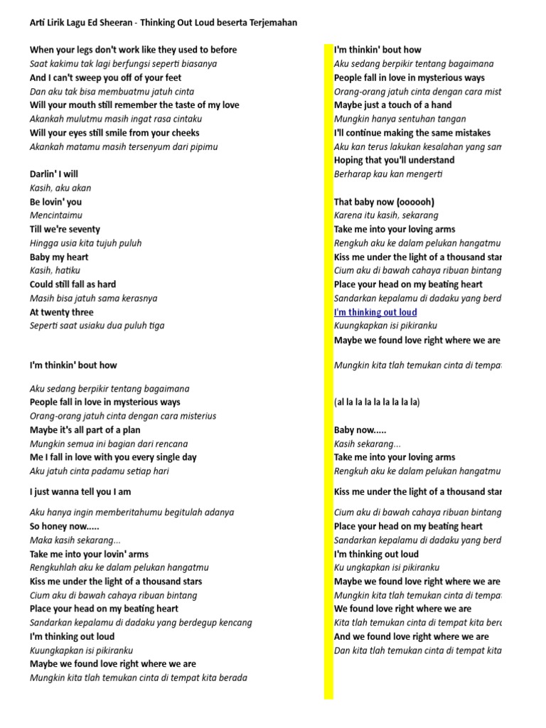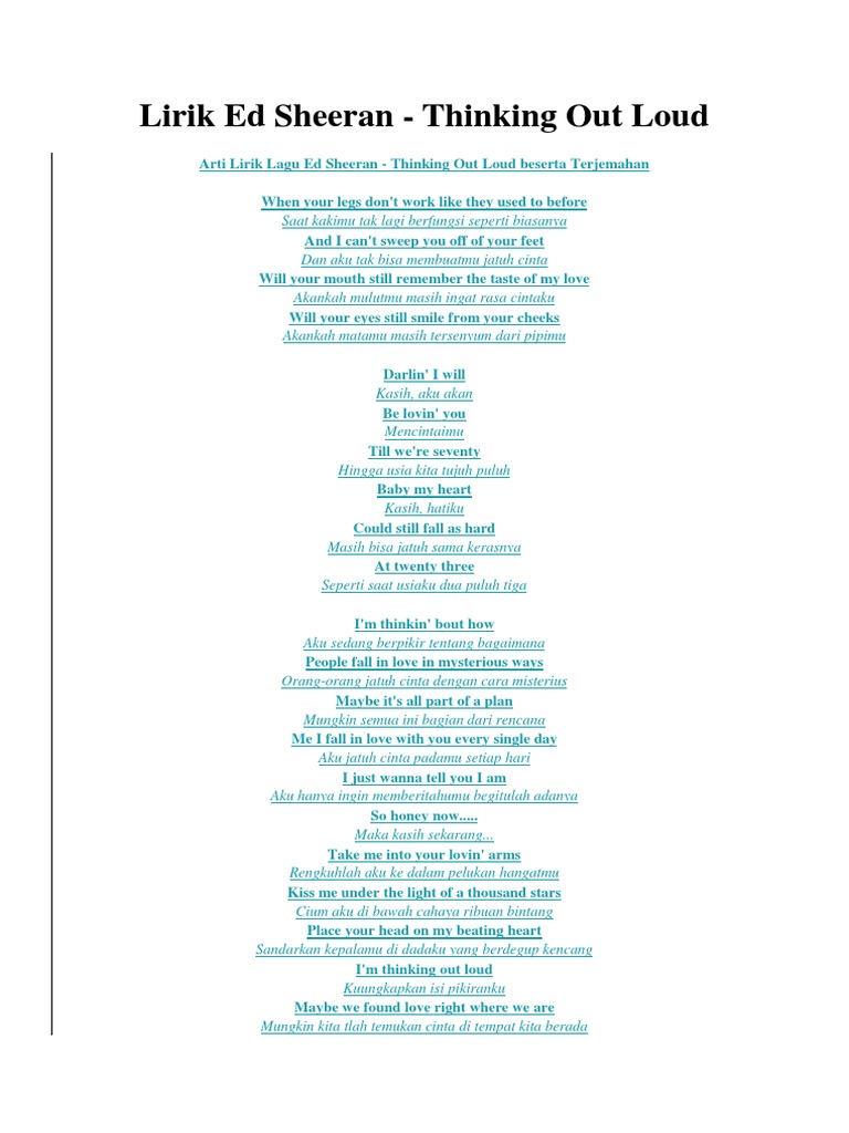 Lirik lagu ed sheeran thinking out loud dan terjemahan nya - www …
