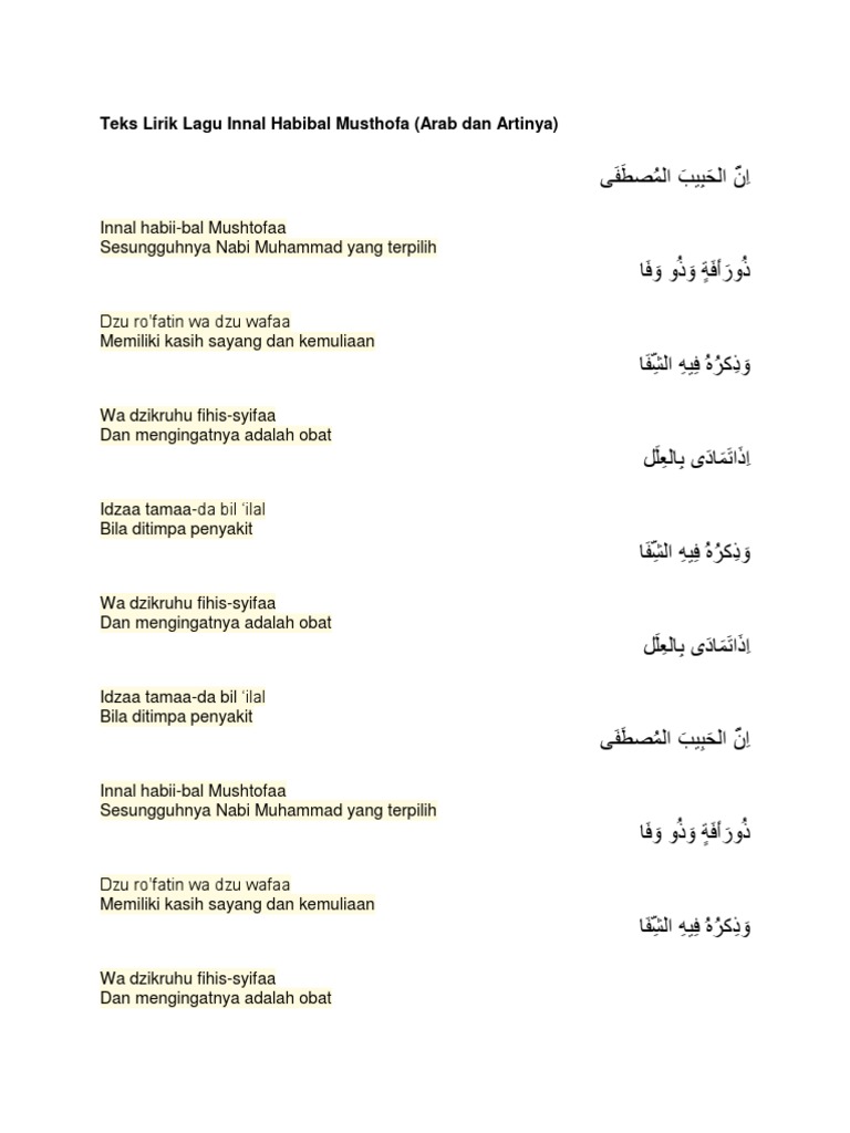 Lirik Sholawat - 11. Innal Habibal Musthofa - Wattpad
