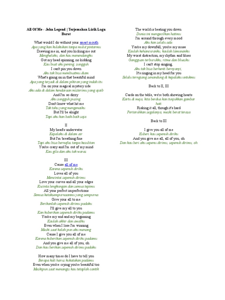 ALL OF ME JOHN LEGEND LIRIK DAN TERJEMAHAN BAHASA INDONESIA …
