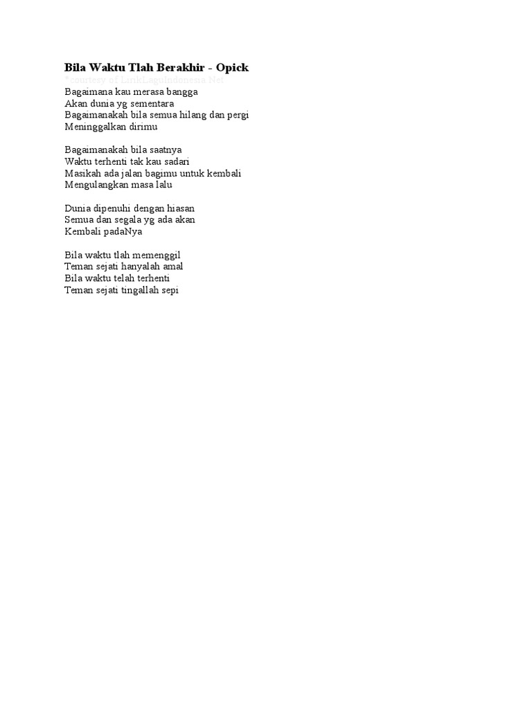 Lirik dan Chord Lagu Bila Waktu Tlah Berakhir - Opick Halaman all …