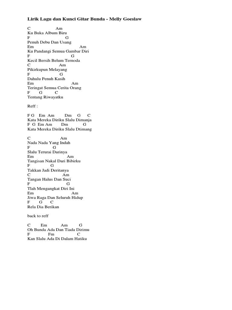 Kunci (Chord) Gitar Bunda - Melly Goeslaw, Paling Mudah Pakai …
