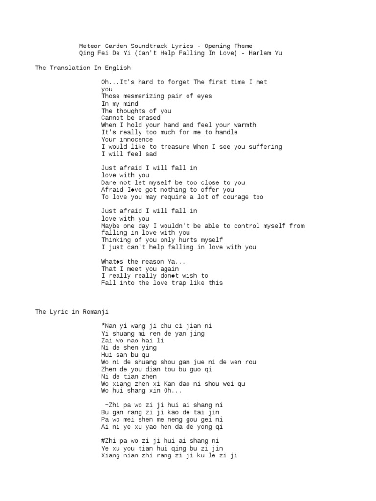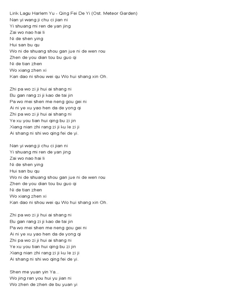 Lirik Ni Yao De Ai Ost Meteor Garden | Fasci Garden