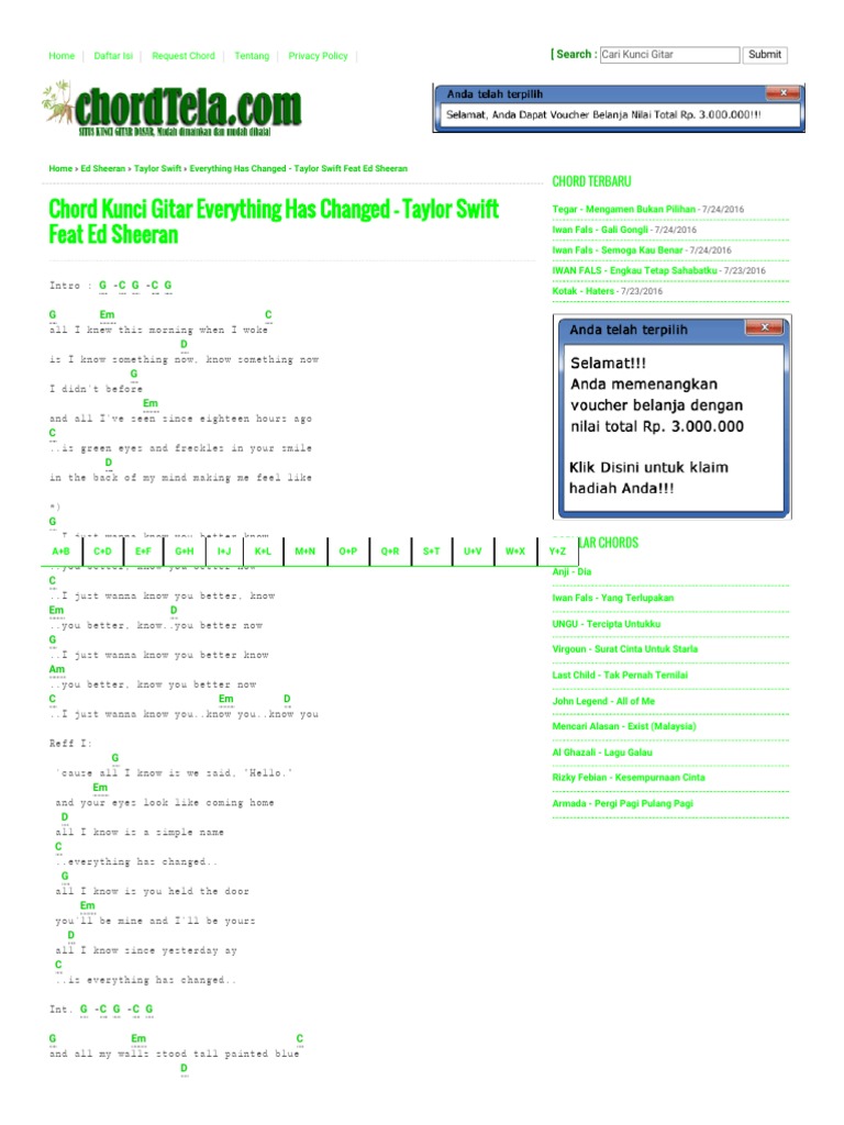 Kunci Gitar Everything Has Changed - Taylor Swift Feat Ed Sheeran …
