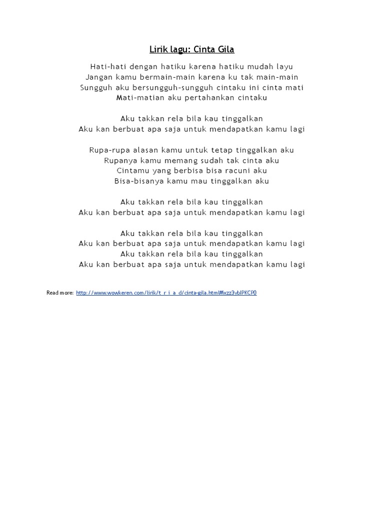 Ruang Belajar siswa kelas 4: Lirik Lagu Galau