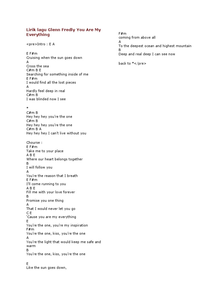 Chord Dan Lirik Lagu Glenn Fredly - You Are My Everything …