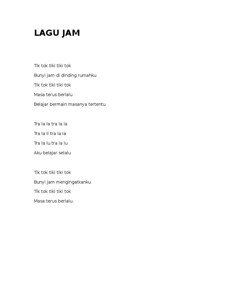 Lirik Lagu Kanak Kanak Bahasa Melayu