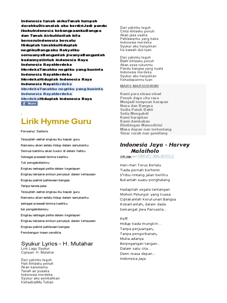 Kumpulan Lirik Lagu - INDONESIA JAYA - Harvey Malaiholo - Wattpad