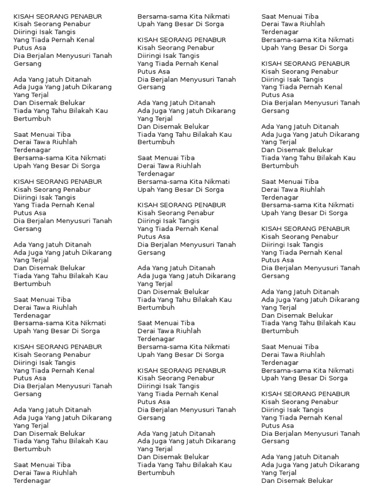 Lirik Lagu Kisah Seorang Penabur