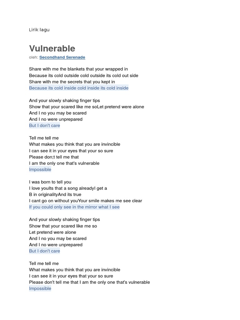 Kumpulan Lirik-Lirik Lagu: Lirik Lagu vulnerable I Secondhand Serenade