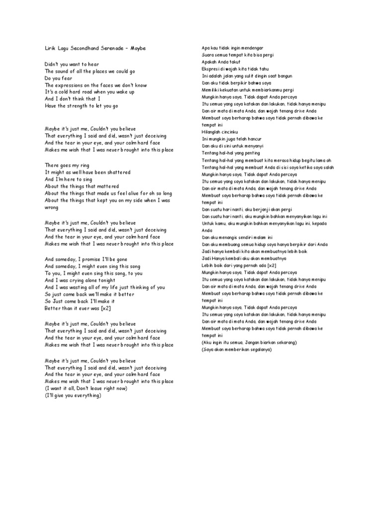 LIRIK LAGU BARAT - Secondhand Serenade - Maybe - Wattpad