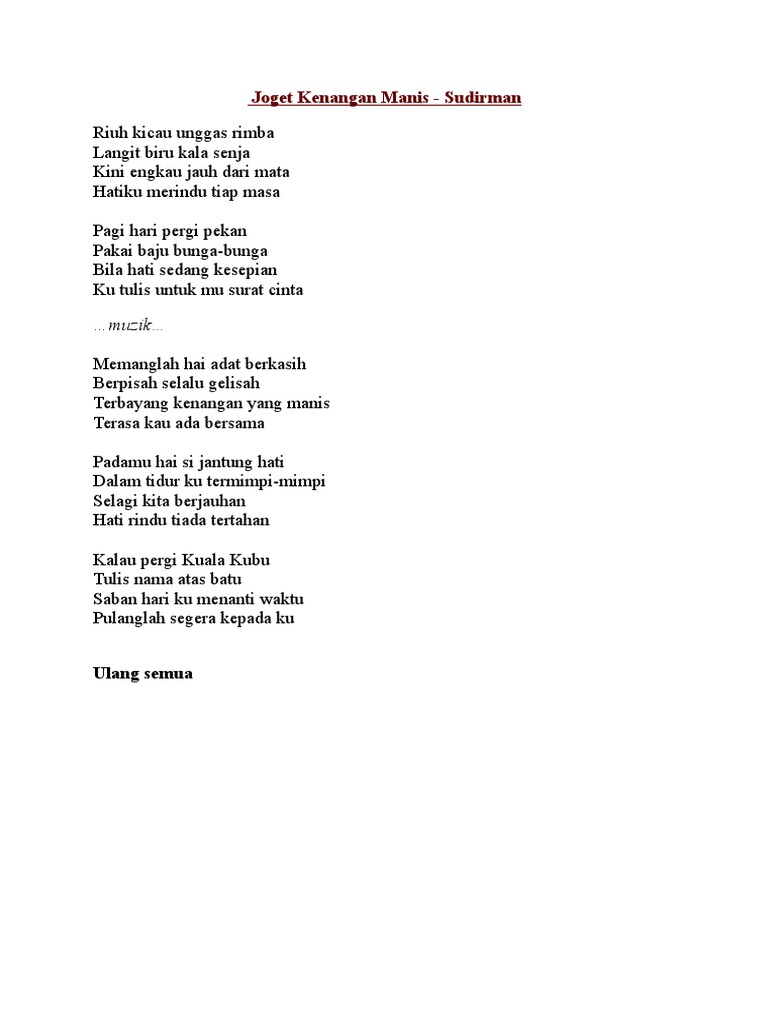 Lirik - Joget Kenangan Manis & Joget Berhibur