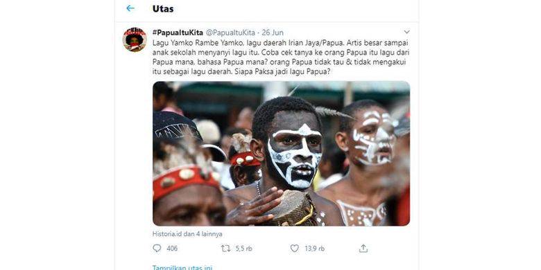 Polemik Lagu Yamko Rambe Yamko di Akun Twitter @PapuaItuKita