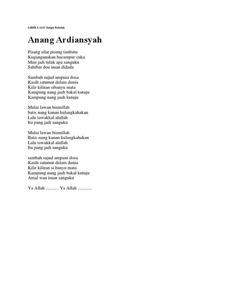 Lirik Lagu Sangu Batulak ~ Anang Ardiansyah | ZonaKamu