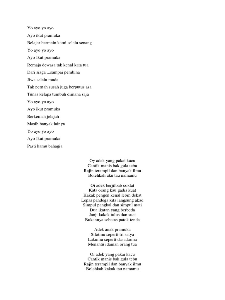 Lirik lagu pramuka sebatas patok tenda. — Steemit