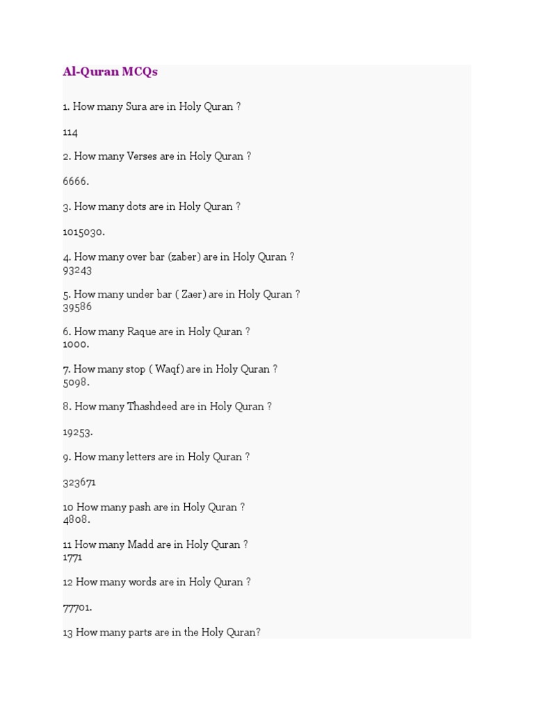 Al-Quran Mcqs | Surah | Quran