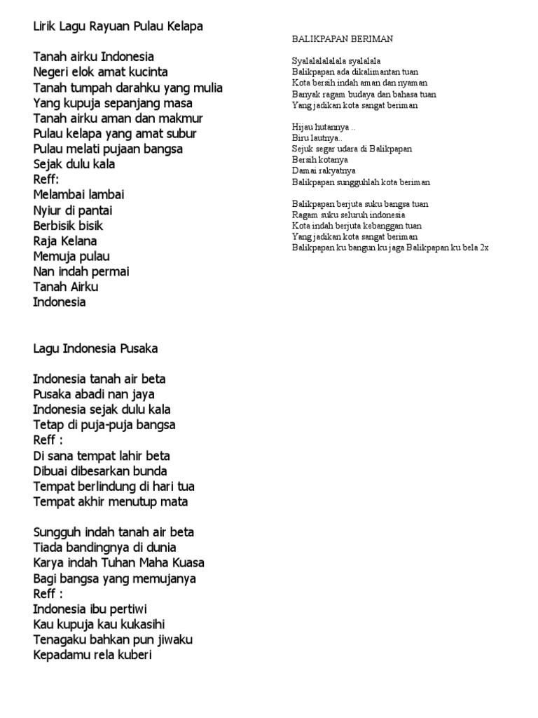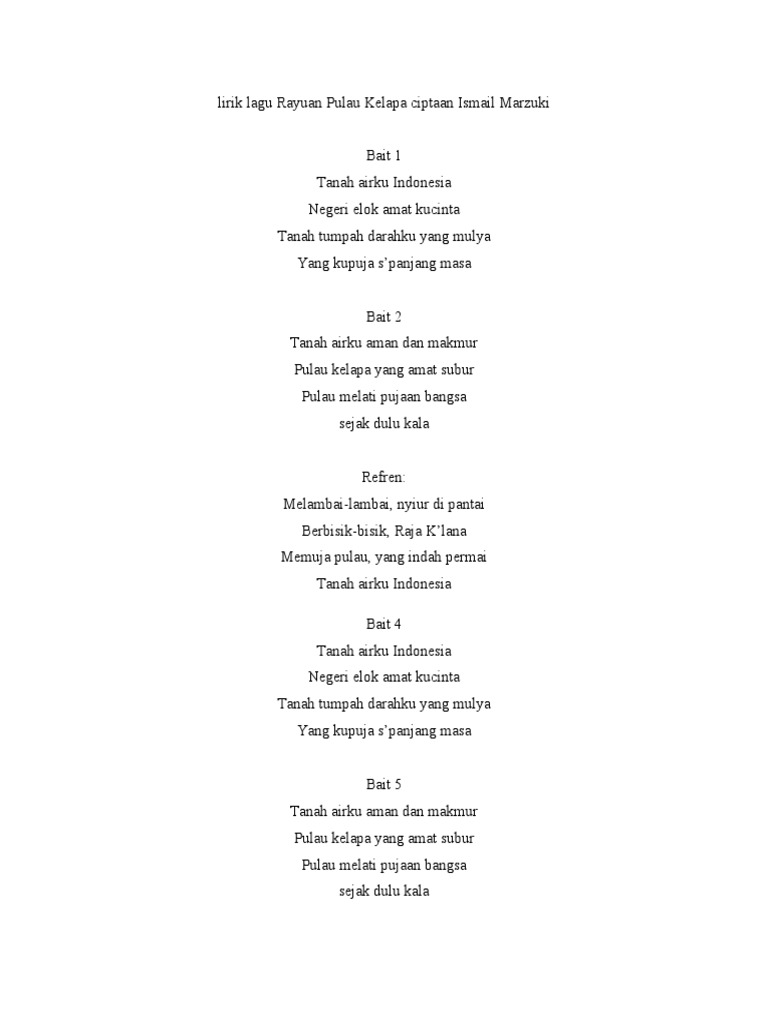 Lagu Wajib Nasional - Rayuan Pulau Kelapa (Lirik) | Facebook