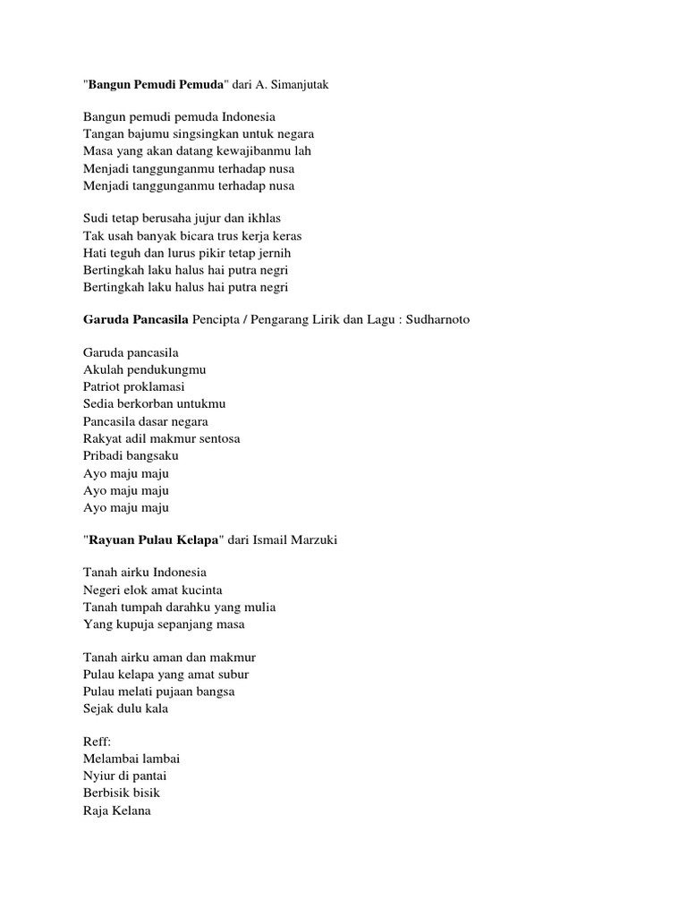 97327588 Kumpulan Lirik Lagu Wajib Nasional