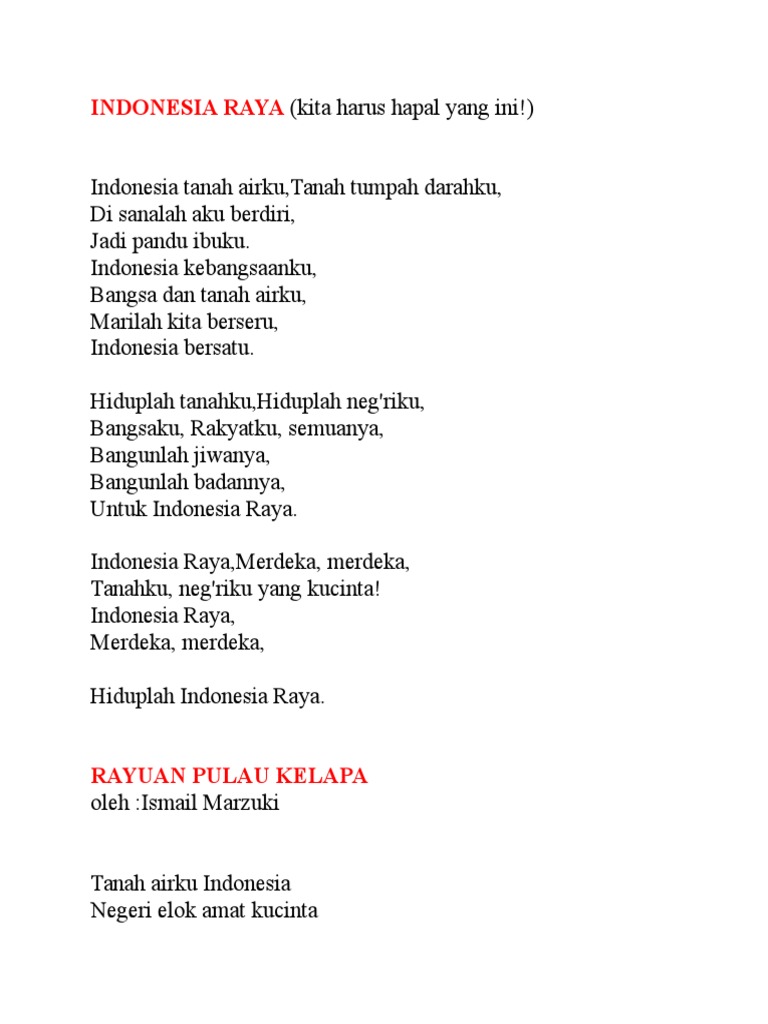 Indonesia Raya Lagu Kebangsaan doc