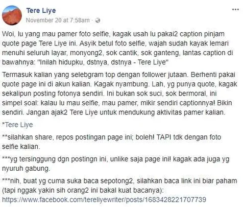 Ngamuk Kutipan Dicomot Selebgram dan Netter, Tere Liye Jadi …
