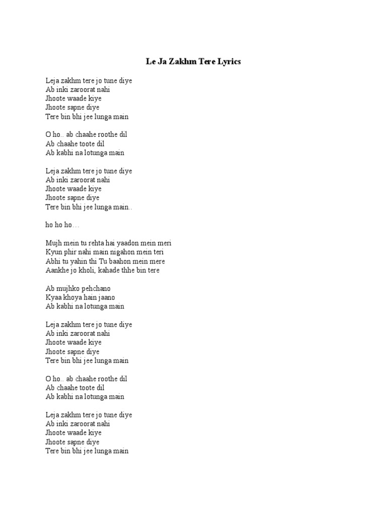 lirik lagu India - Lirik Lagu Tere Liye - Veer Zaara - Wattpad
