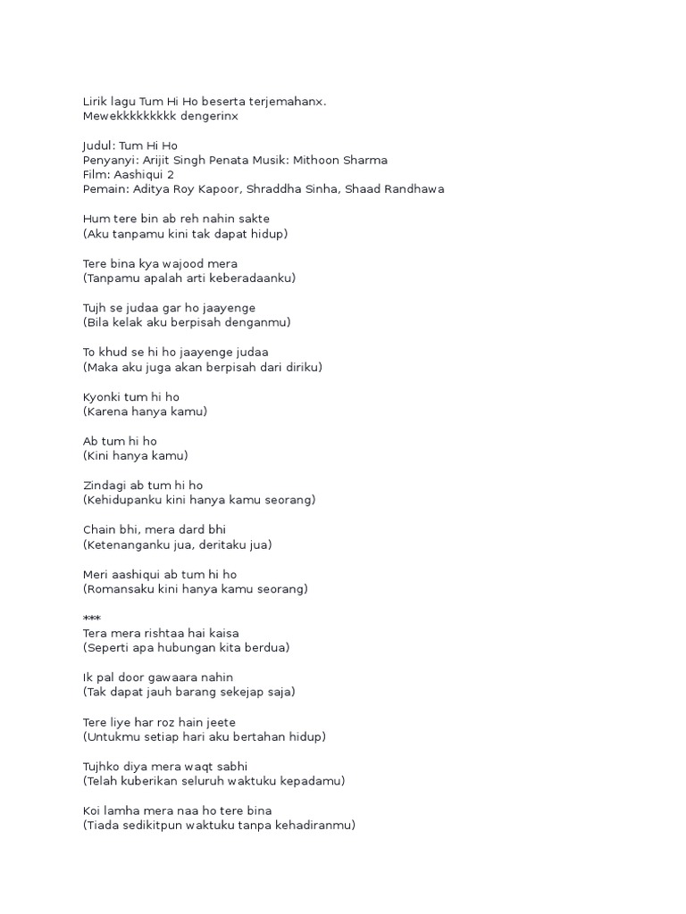 Lirik Lagu Tum Hi Ho Beserta Terjemahanx