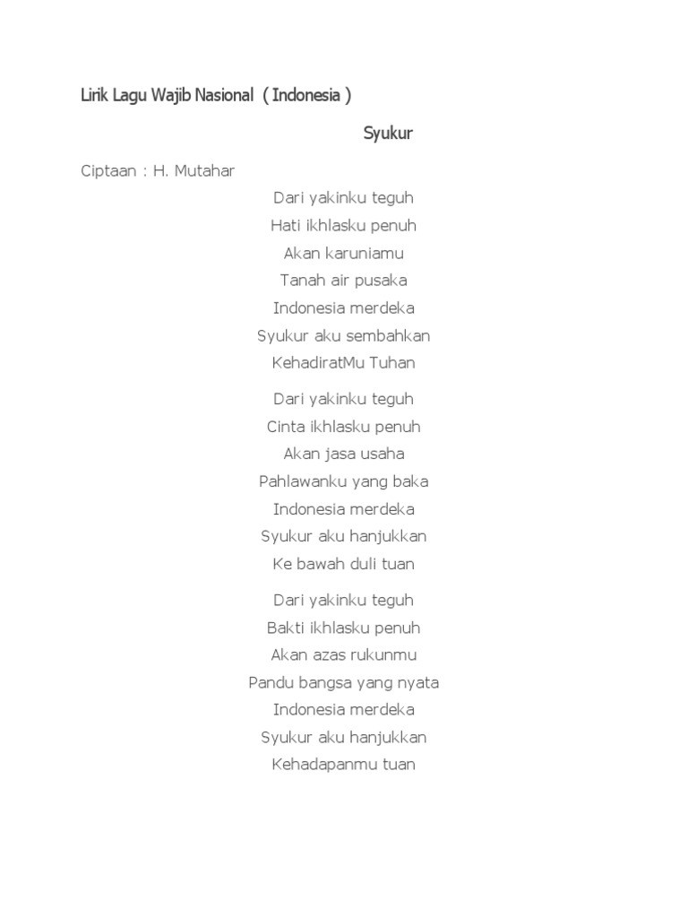 Lirik Lagu Wajib Nasional – Syukur | Lirik lagu, Lirik, Bersyukur