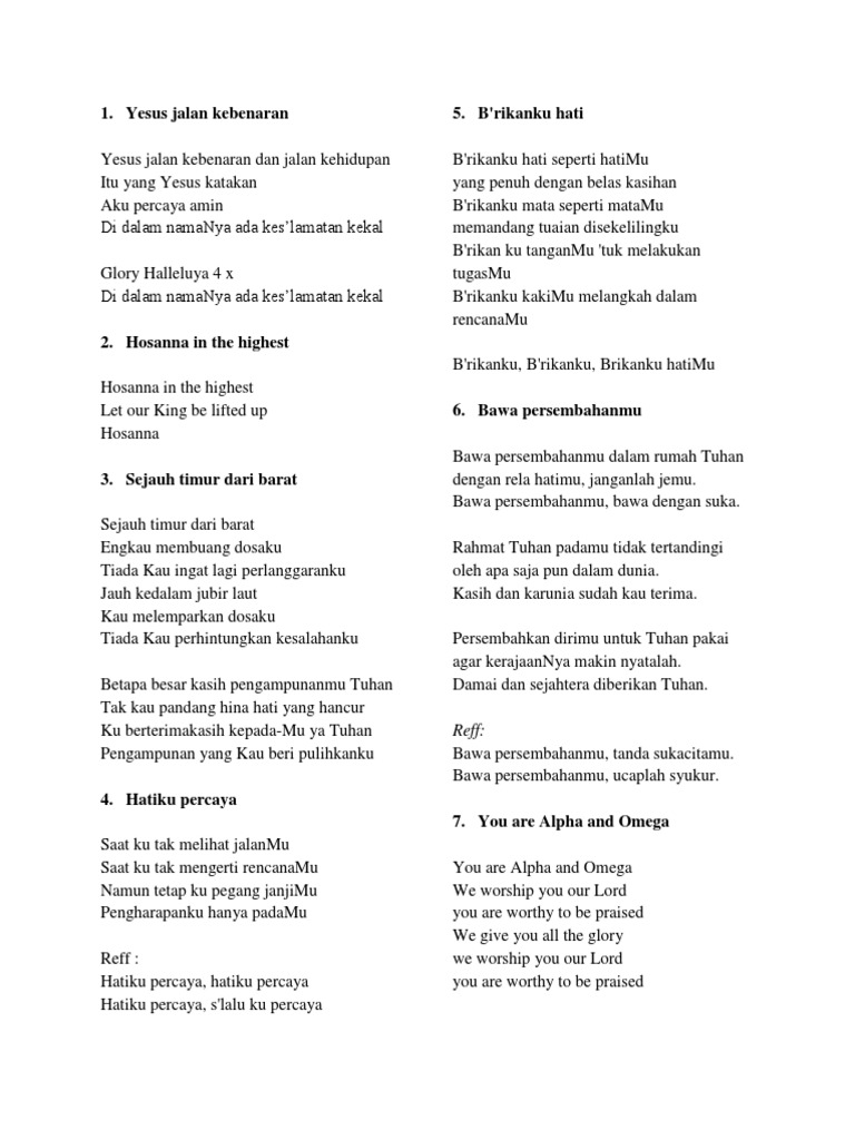 Lirik Lagu Pujian Rohani Kristen Sekolah Minggu Gereja Tuhan Yesus …