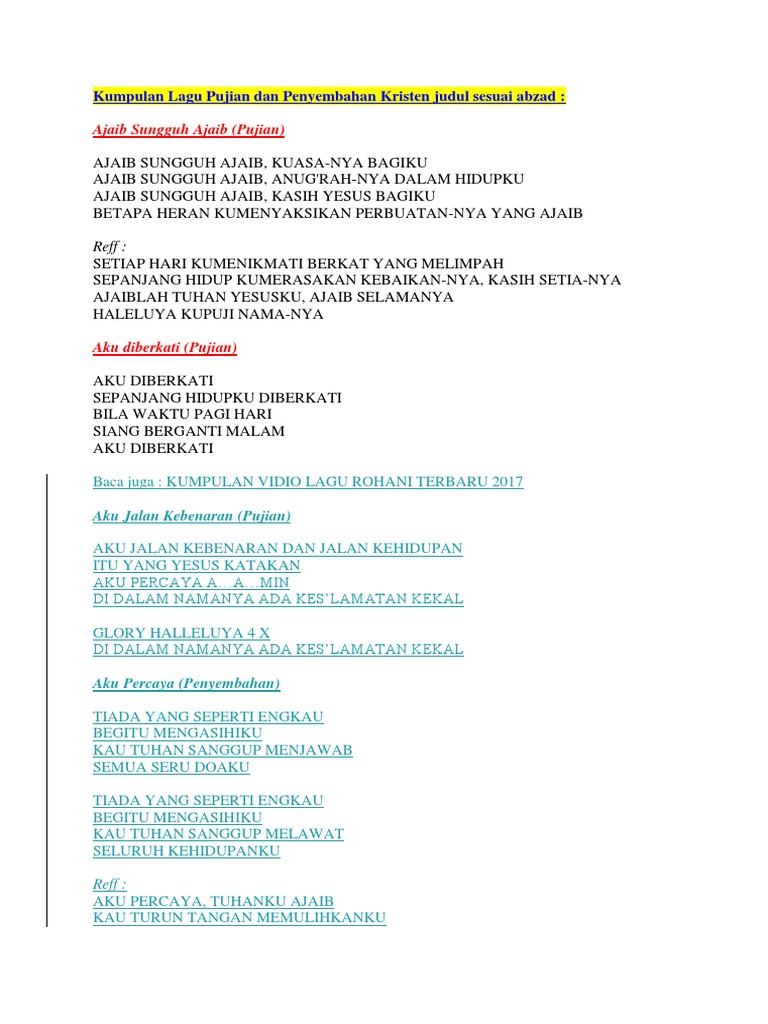 DOC) LIRIK LAGU ROHANI | erli laurina - Academia.edu
