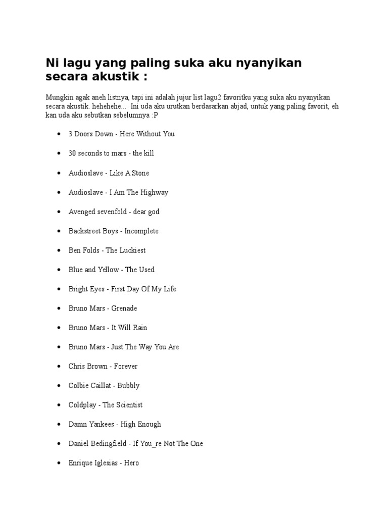 DAFTAR ISI Terjemahan Lirik Lagu Barat Indonesia Lengkap