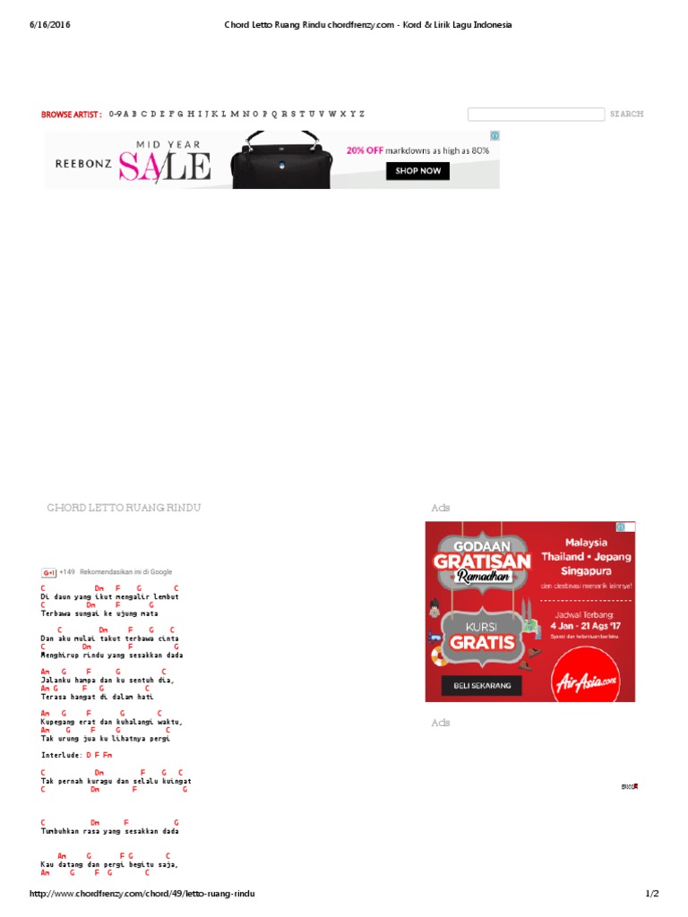 Tag: lirik lagu Ruang Rindu - Letto - Kunci (Chord) Gitar dan Lirik Lagu ‘Ruang Rindu’ - Letto, ‘Di Daun yang Ikut Mengalir Lembut’ - Tribun Papua