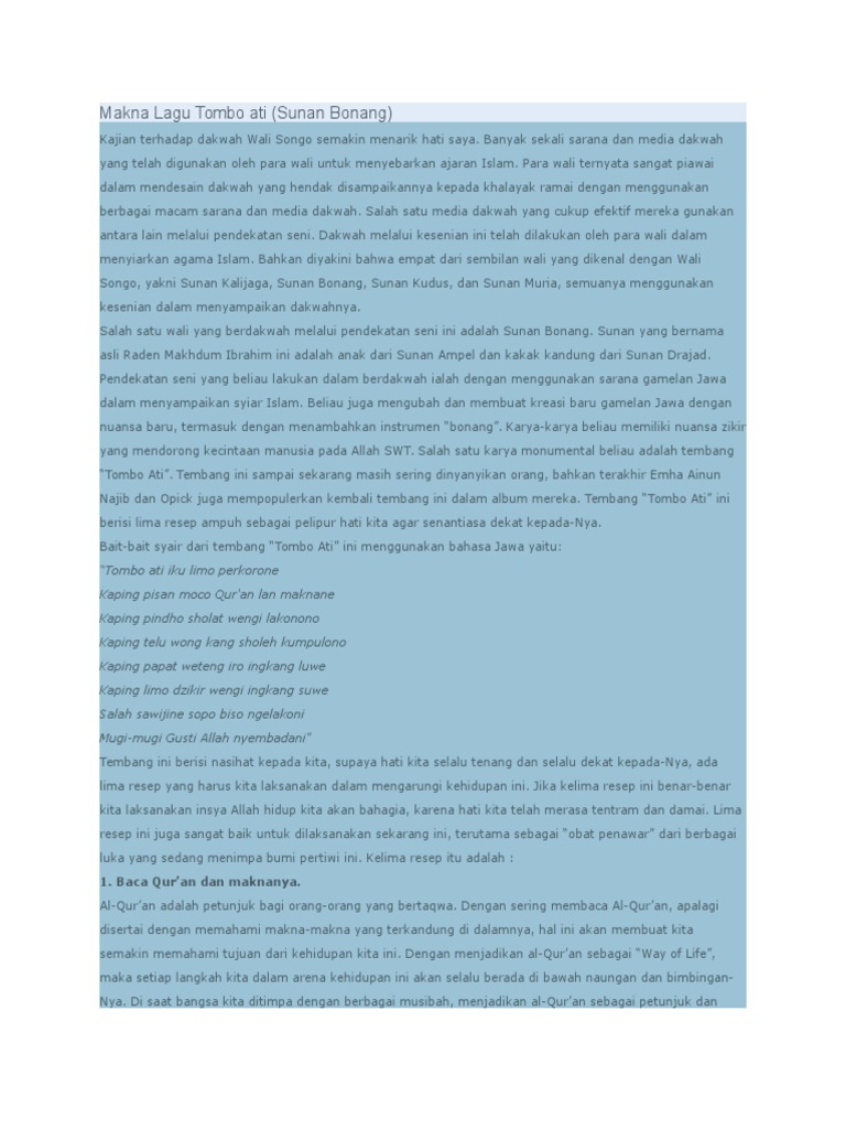 PDF) Nilai yang Terkandung dalam Syair Tombo Ati dan Tujuh Ajaran Sunan Drajat | Dedik Baihaqi - Academia.edu