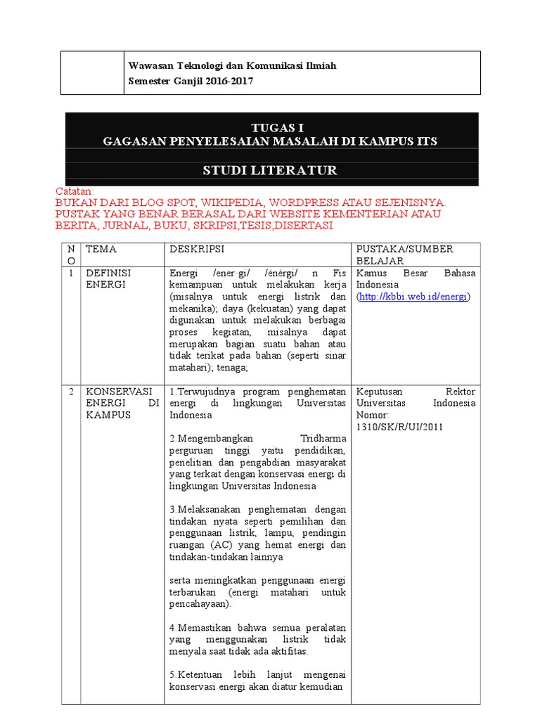 Studi Literatur: Tugas I Gagasan Penyelesaian Masalah Di Kampus Its