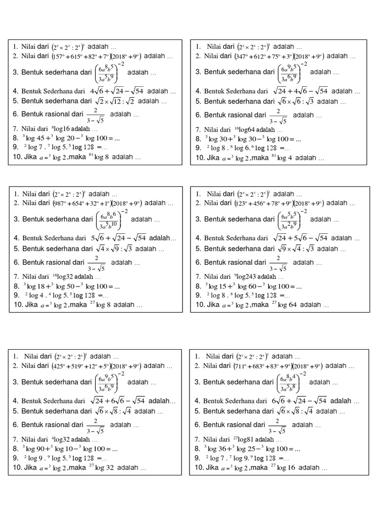Nilai dari logaritma 100 Log 1/1.000.000 adalah…. - Brainly.co.id