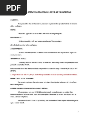 Standard Operating Procedures Covid-19 Virus Testing: Objective: | Hygiene | Medical Specialties