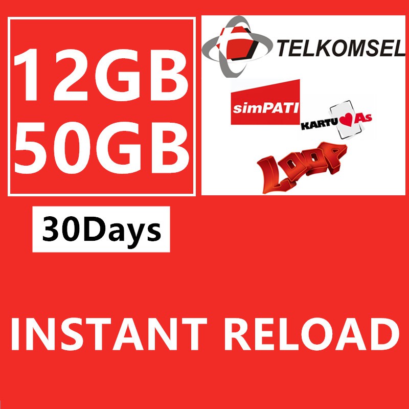 INSTANT RELOAD TOPUP PULSA INDONESIA 30 Days Internet Data 12GB …