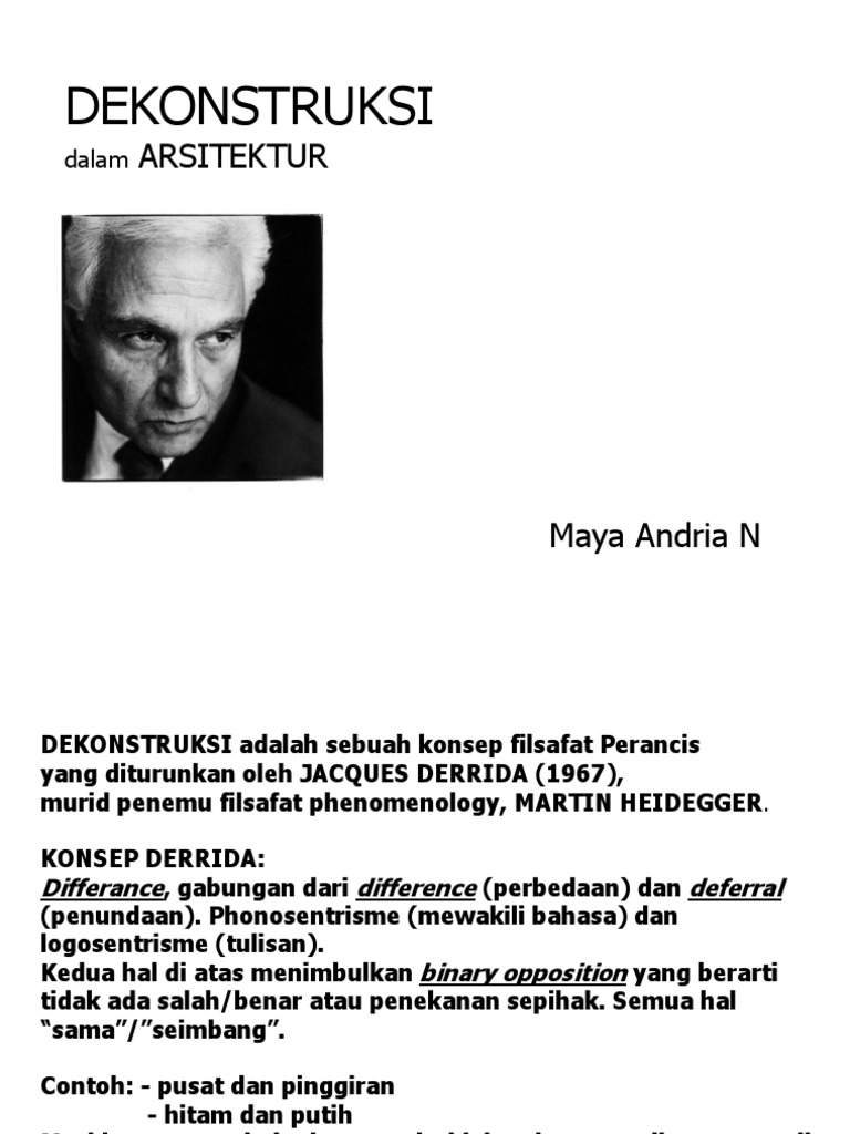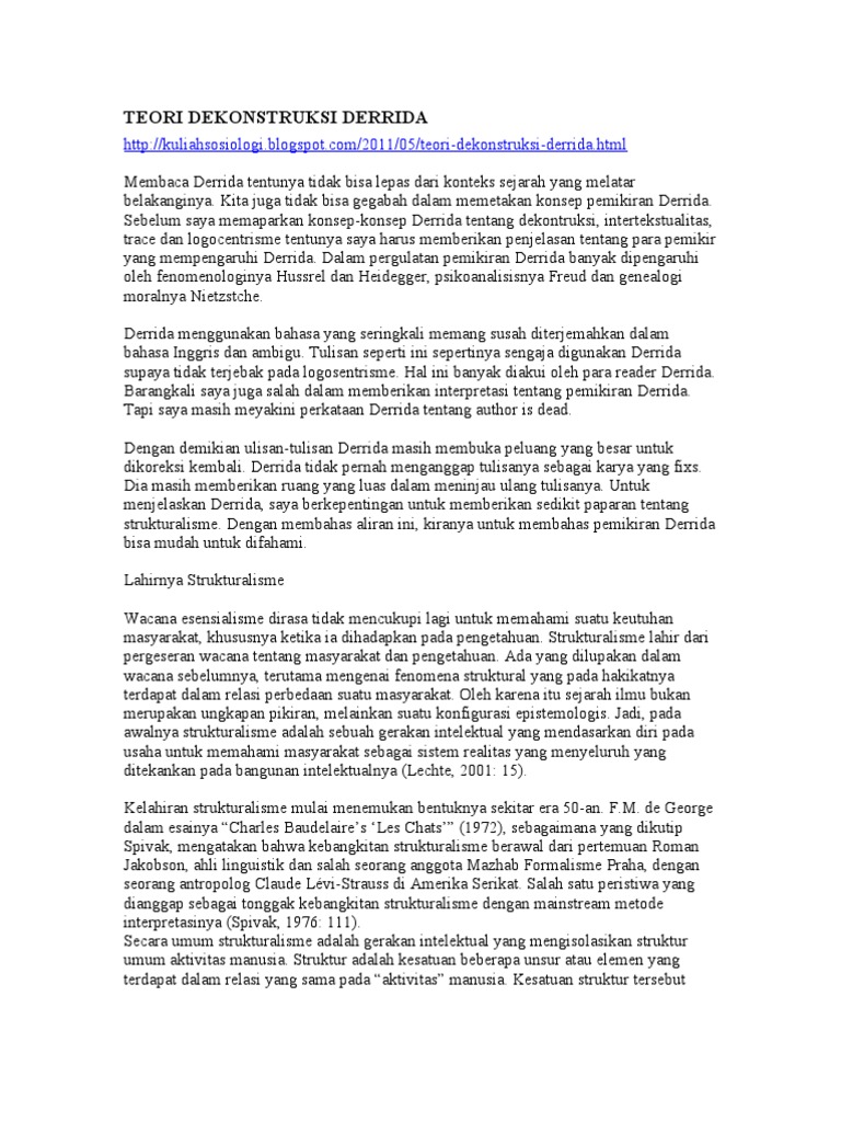 PDF) Jacques Derrida (1930): Biografi, Dekontruksi dan …