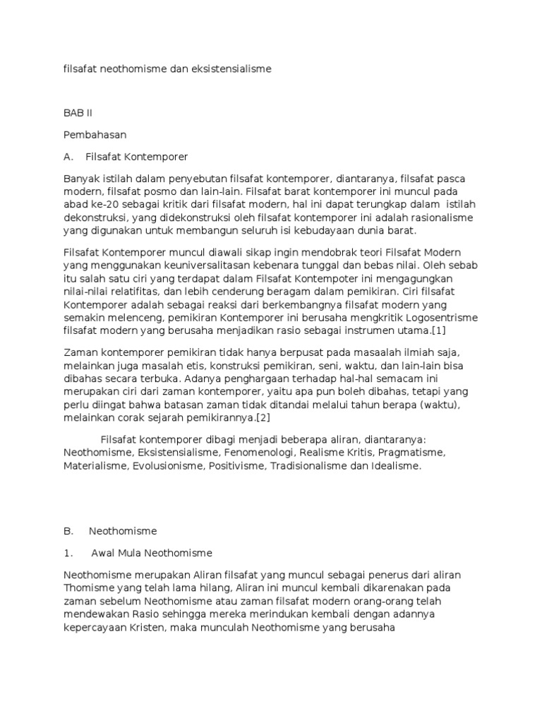 Filsafat Neothomisme Dan Eksistensialisme