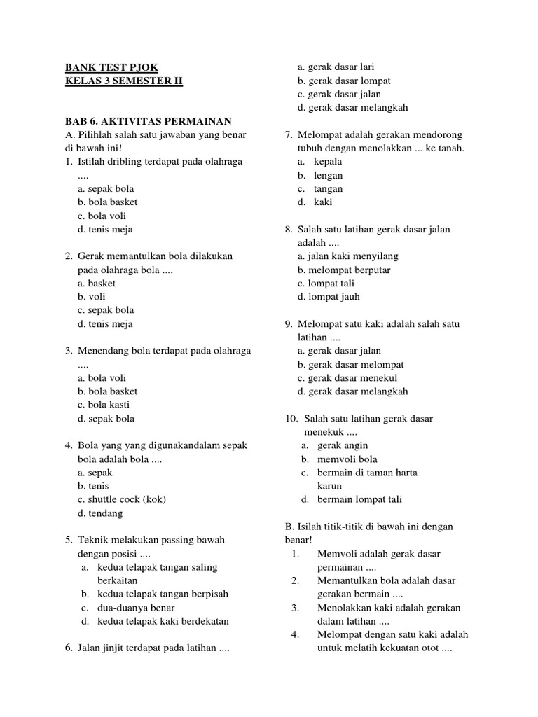 DOC) 50 Soal -Soal Olahraga dan kunci jawaban | dede wirayuda - Academia.edu