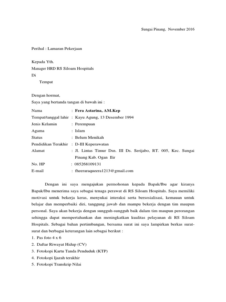 Surat Lamaran Pekerjaan Rs Siloam Hospitals