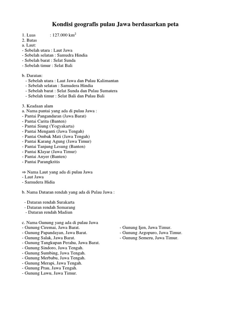 Kondisi Geografis Pulau Jawa Berdasarkan Peta Luas Batas Alam