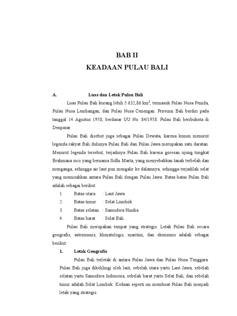 BAB II TINJAUAN PUSTAKA 2.1 Keadaan Geografis Pulau Bali