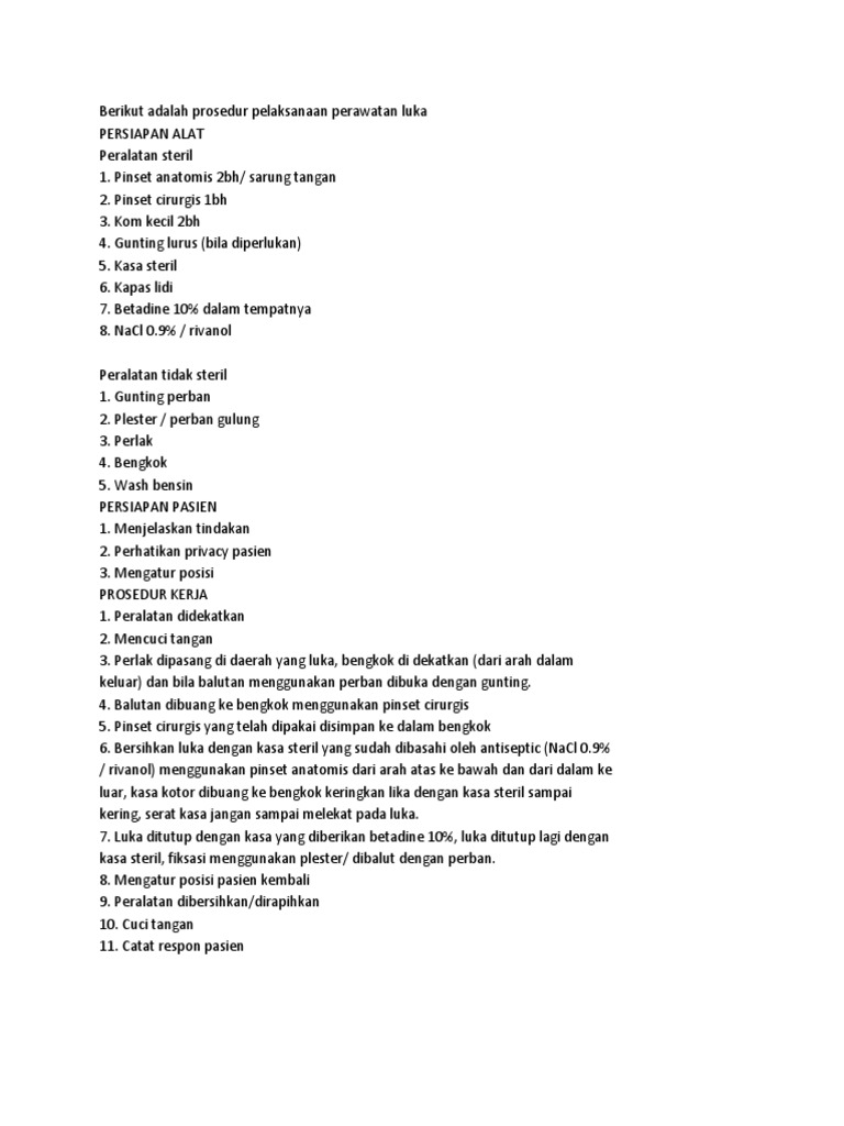 Berikut Adalah Prosedur Pelaksanaan Perawatan Luka