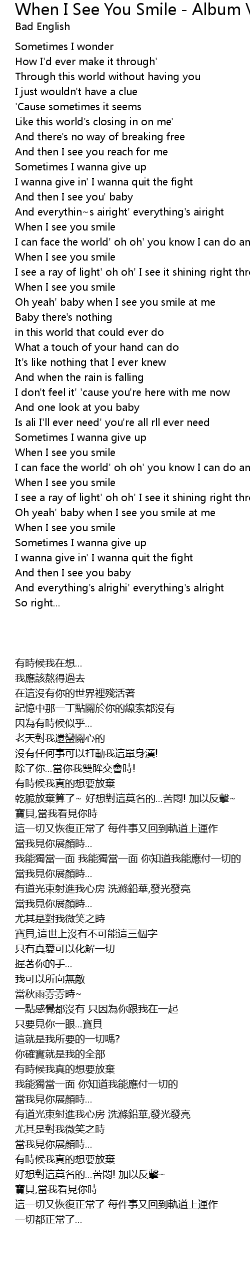 When I See You Smile - Album Version Lyrics - Follow Lyrics