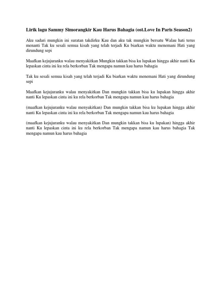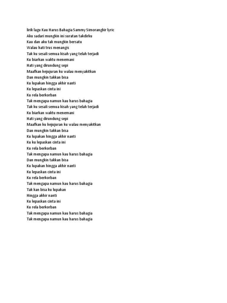 Kau Harus Bahagia - Lyrics and Music by Sammy Simorangkir …