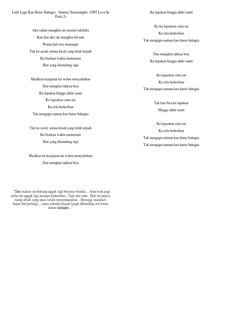 Kau Harus Bahagia - Original Key - Lyrics and Music by Sammy …