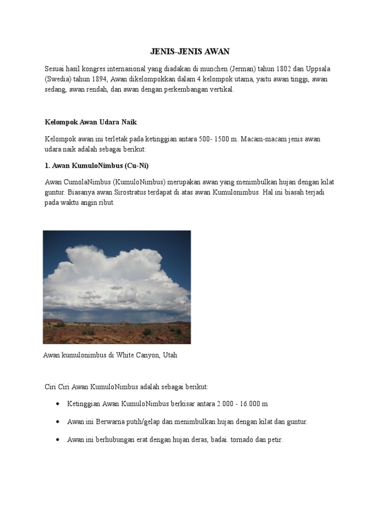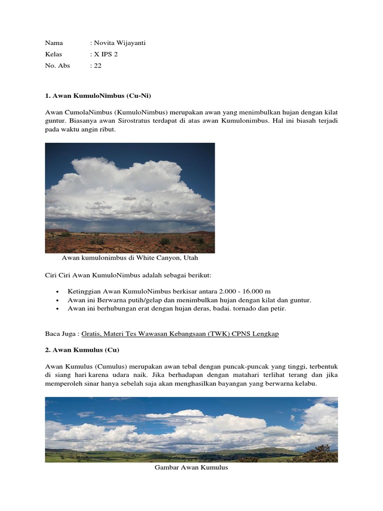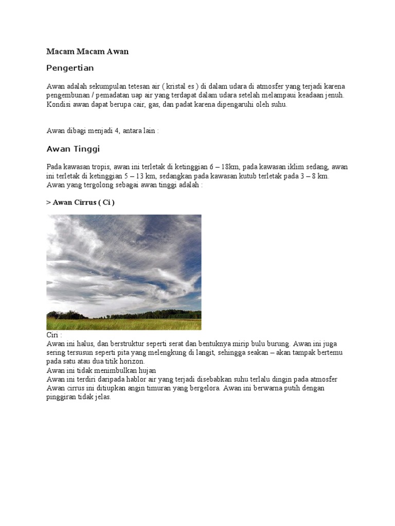Macam Macam Awan Dan Ciri - Cirinya - Tugas Sekolah