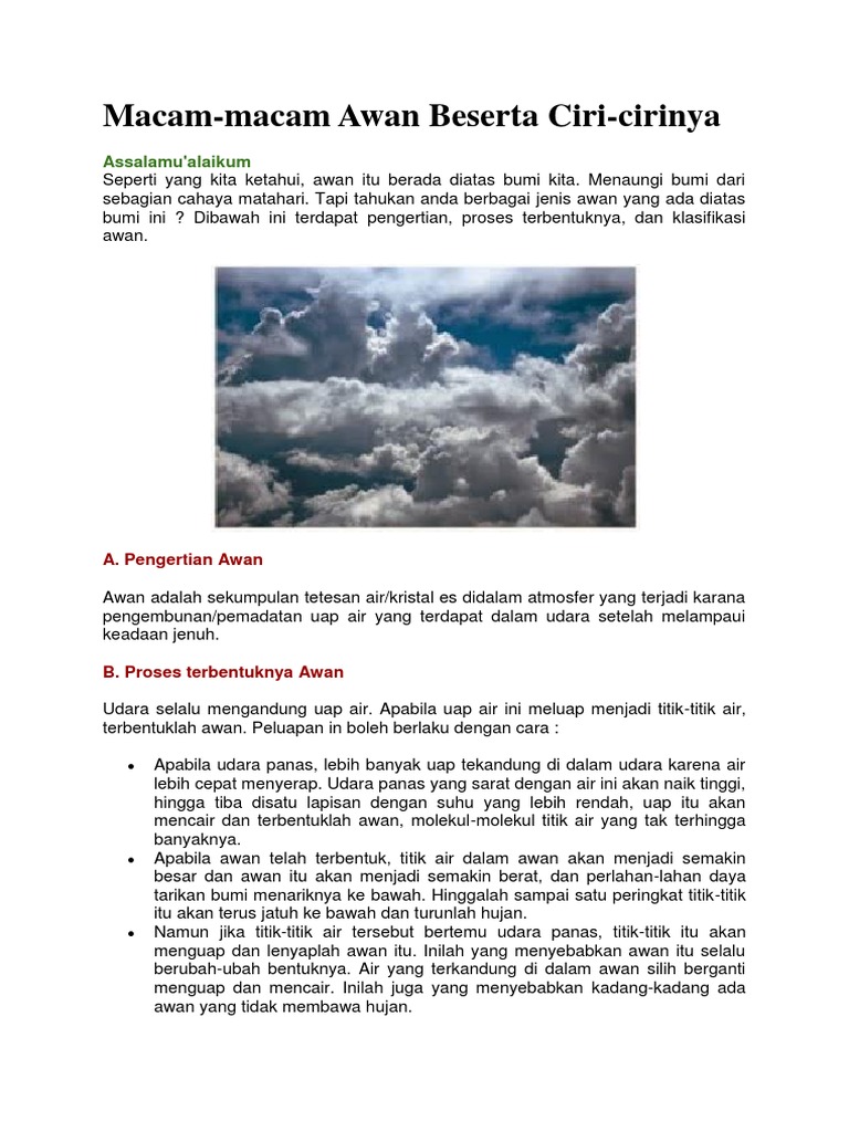 Macam-macam Awan Beserta Ciri-cirinya: Assalamu’alaikum
